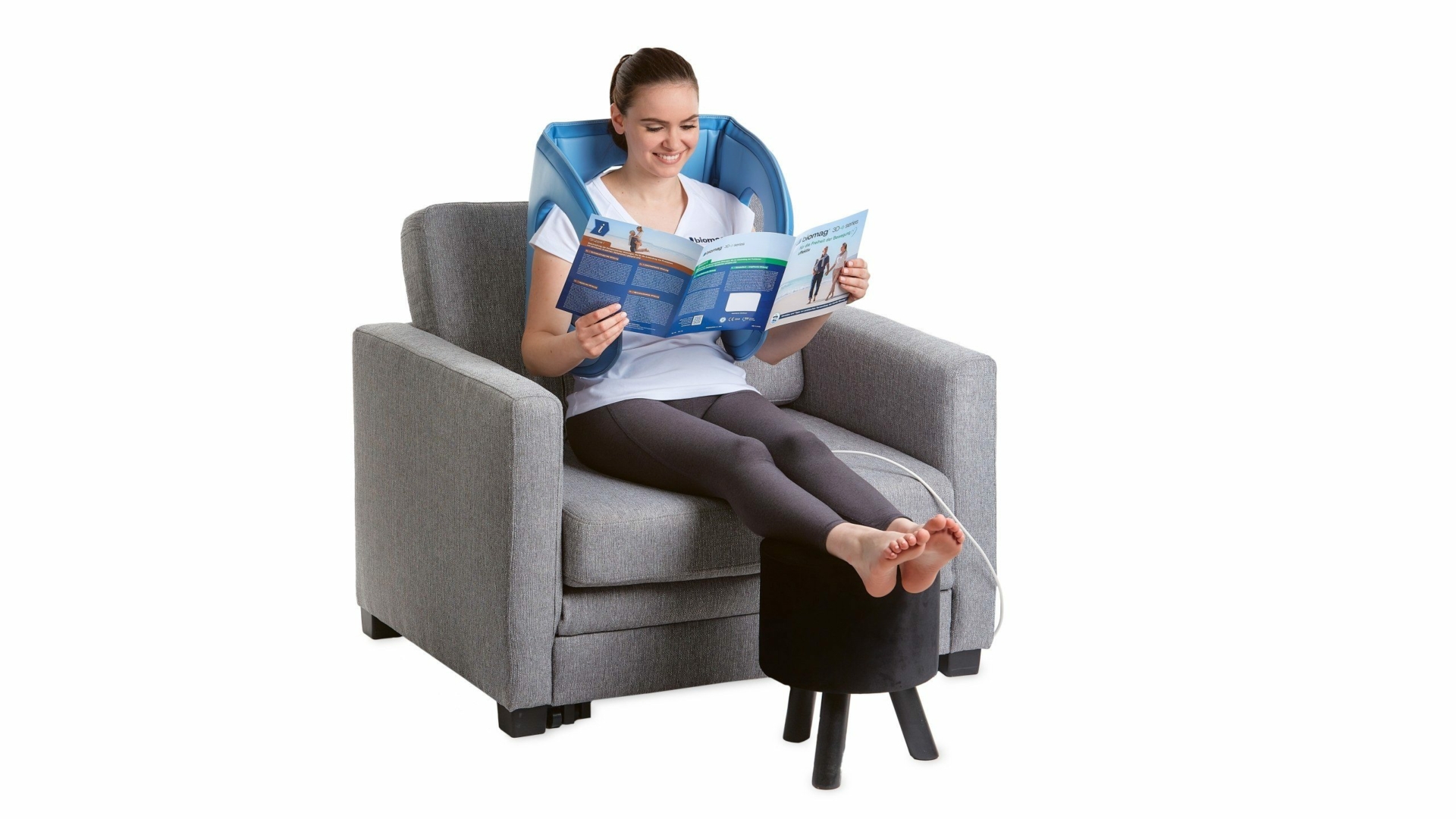 La aplicación es muy sencilla. Seleccione el efecto terapéutico deseado en el dispositivo y acople el aplicador conectado al lugar de aplicación deseado. La magnetoterapia suele aplicarse 2 veces al día durante 20 minutos.